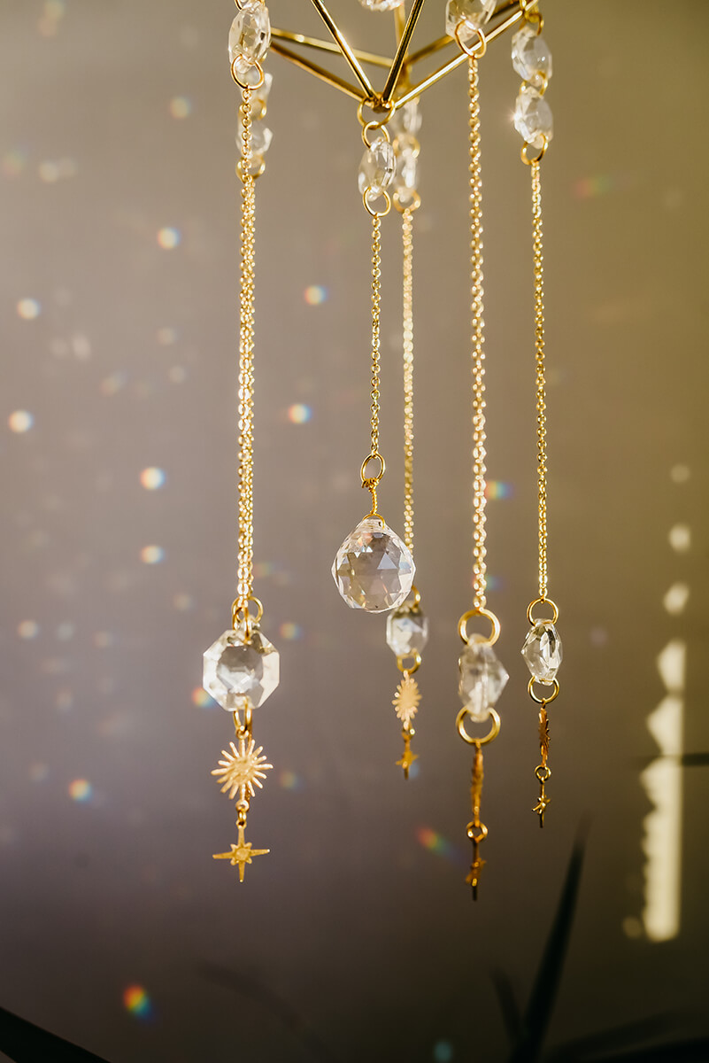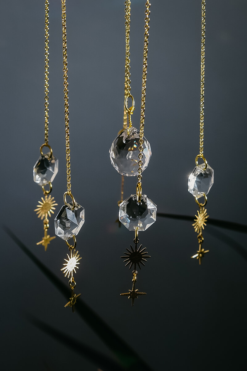 Materiál: kov, broušený český křišťál, mosazný drátek